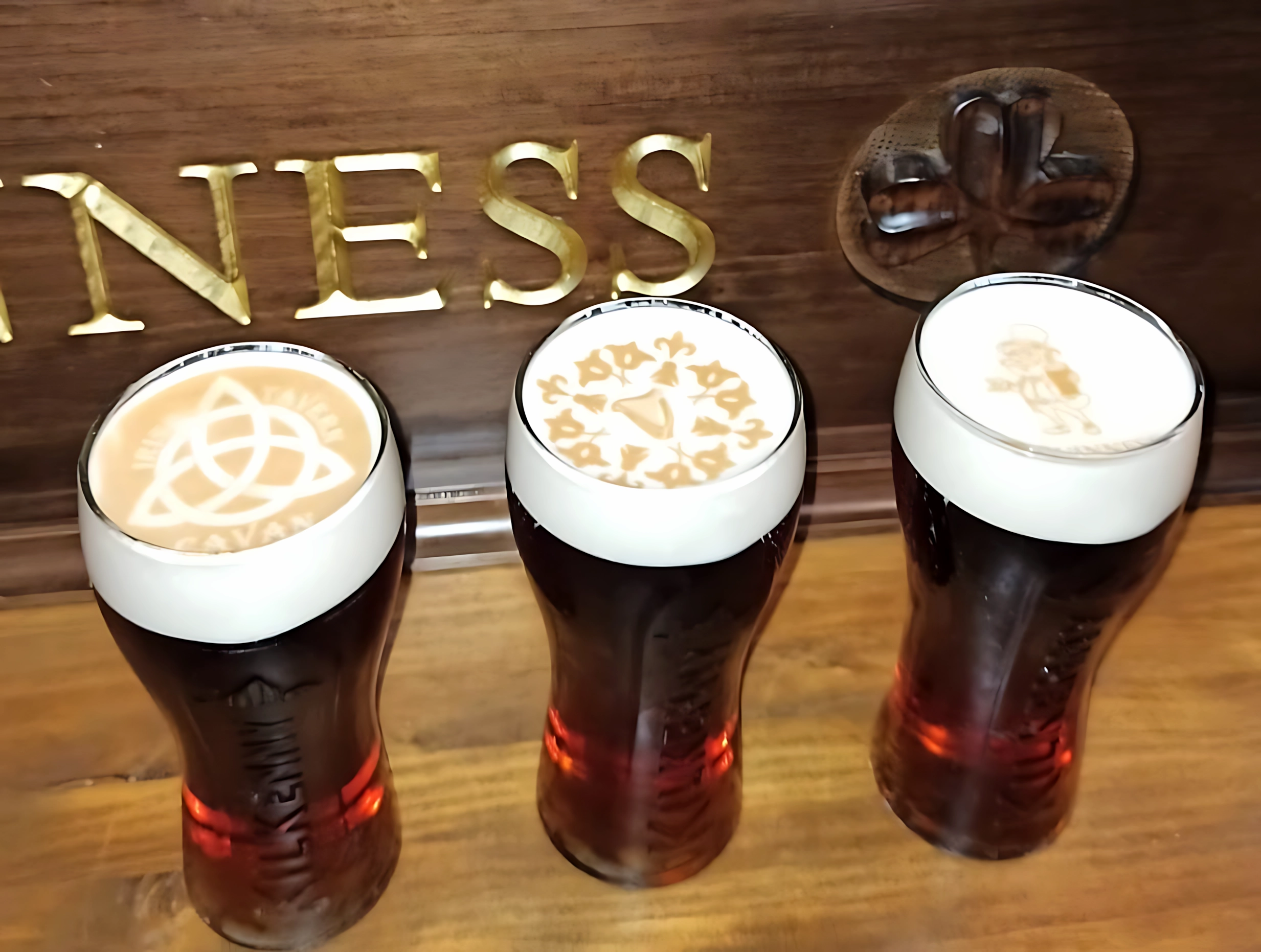 Nada más entrar percibí un aire cálido y festivo típico de los pubs irlandeses. La música rock celta o temas populares amenizan la velada: como comenta un cliente, “buena música, ambiente agradable y cervezas super frías”. Los colores oscuros, los carteles de Guinness y las pintas visibles en las mesas refuerzan la temática. Además de la barra interior, disponen de una zona de terraza (en verano he visto gente disfrutando cerveza al fresco). Aunque el local no es muy grande, el espacio está bien aprovechado y el ruido nunca fue molesto; al contrario, la mayoría de comentarios destaca su atmósfera acogedora. El personal viste casi como en un bar tradicional irlandés y la atención es rápida y amable: varios clientes coinciden en resaltar lo “amable y servicial” del equipo.