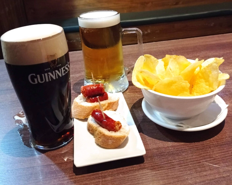 - Amplia carta de cervezas importadas (Guinness, Murphy’s, sidra asturiana, etc.) y bebidas irlandesas clásicas.