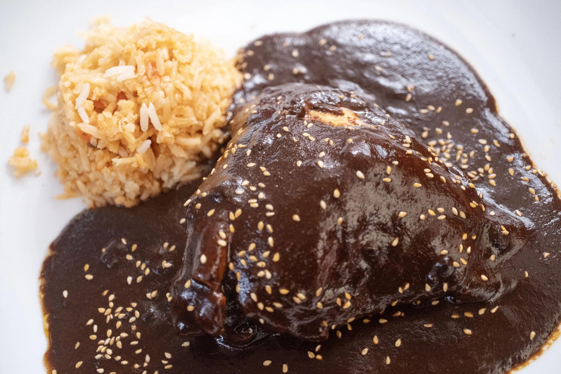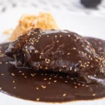 - Servir: Baña las piezas de pollo con abundante mole y espolvorea ajonjolí tostado por encima.