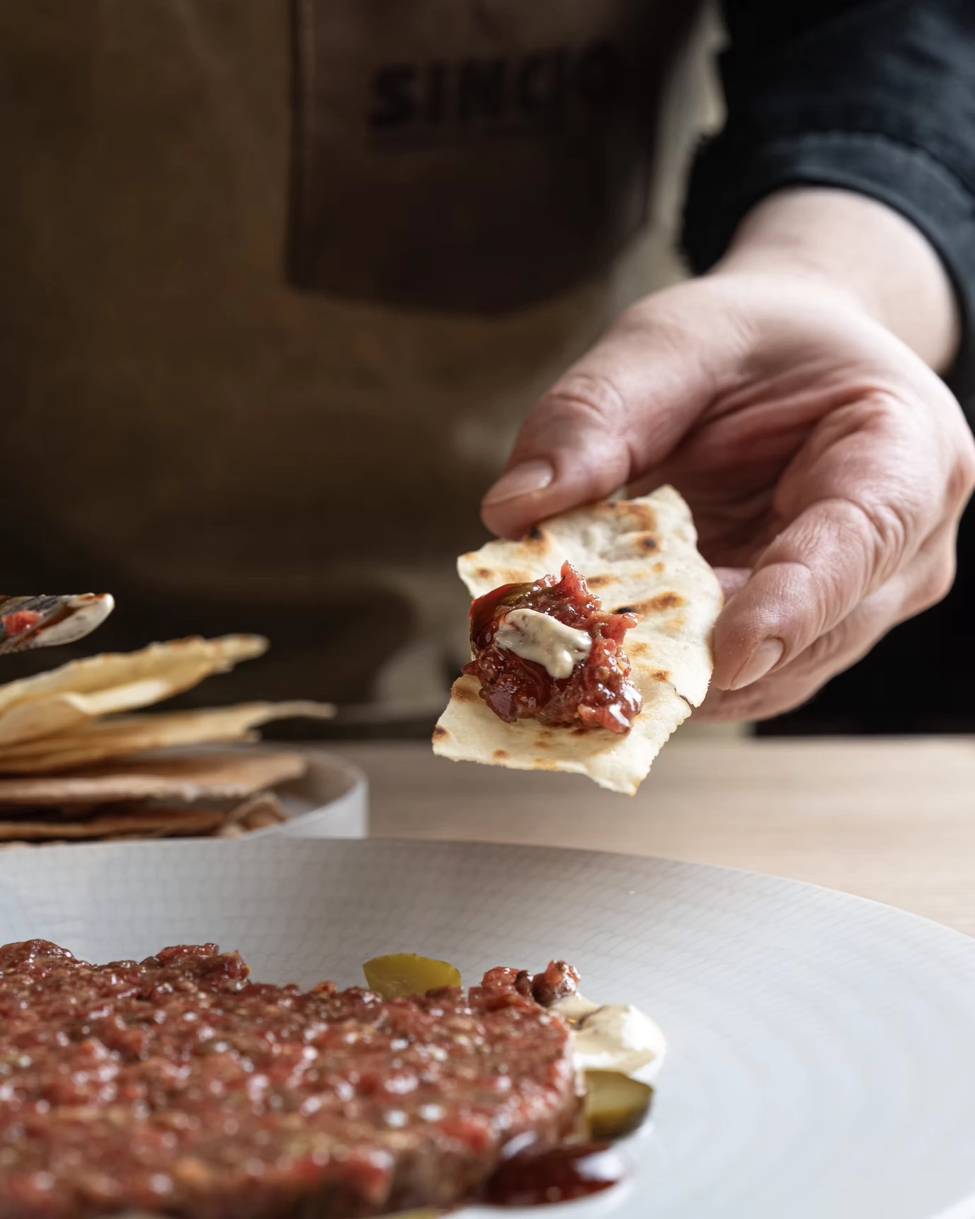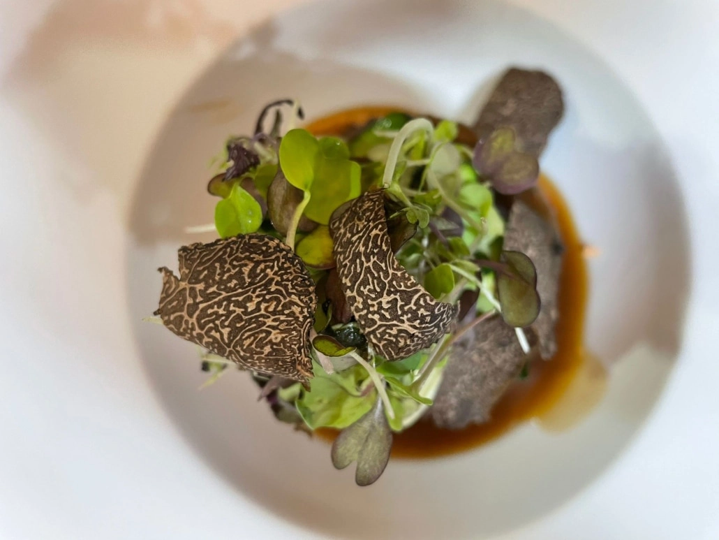 La carta de SINCIO está diseñada para compartir y probar múltiples sabores sin sentirse abrumado. Cada plato muestra una intención clara detrás de la elección de ingredientes y técnicas, desde las croquetas de jamón ibérico con leche de pastoreo hasta platos más elaborados como el arroz cremoso con boletus y trufa melanosporum o el steak tartare de vaca madurada.