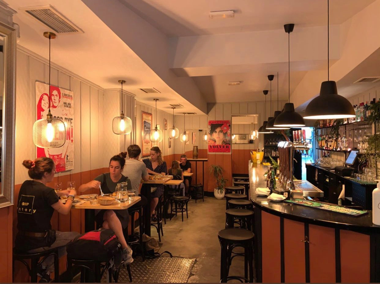 El establecimiento destaca por su atmósfera cálida y sin pretensiones. En horas pico puede llenarse de gente, generando un bullicio agradable que anima la velada. Aunque en fines de semana suele formarse cola (es aconsejable reservar), encontramos que el personal atiende con amabilidad incluso en los momentos más concurridos. La decoración, con mesas de madera y posters españoles en la pared, refuerza esa sensación de “estar como en casa” en el corazón de Madrid.