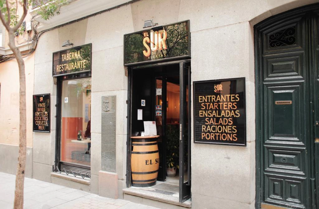 Taberna El Sur de Huertas se ubica en la mítica Calle de Huertas, en pleno Barrio de las Letras de Madrid. Este local tradicional evoca la esencia de las viejas tabernas madrileñas, ofreciendo un refugio acogedor junto a espacios culturales como el Museo del Prado o el Teatro Español. La fachada de la taberna, con su letrero clásico, invita a entrar tras un paseo por las calles aledañas. Nos sorprendió su ambiente desenfadado pero auténtico: aquí conviven turistas y vecinos, disfrutando sin prisa de tapas y vinos.